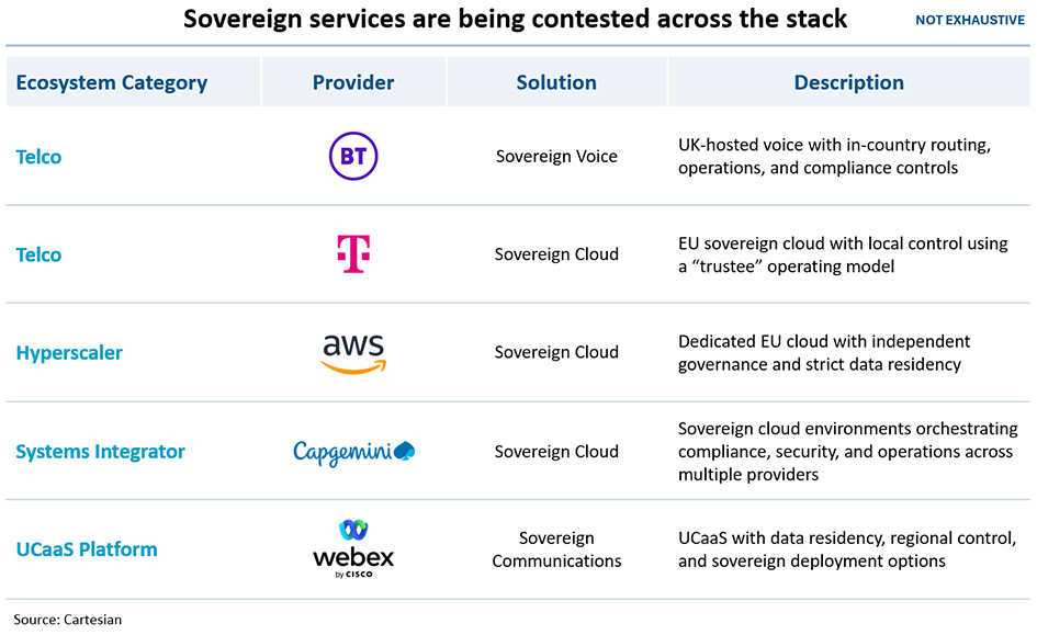 • Systems integrators are positioning themselves as the interface that designs, manages, and governs sovereign environments across vendors.